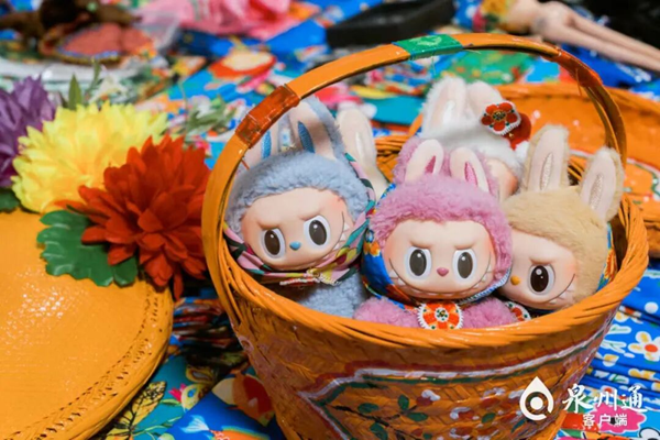 年轻一代也主动参与这场非遗焕新。“90后”女孩曾茹婷巧妙地将惠女文化带入潮玩领域。她以LABUBU潮流玩具为灵感,利用惠女服装的边角料剪裁拼接,用微型“缀仔”固定,制作出一系列融合闽南刺绣与撞色纹样的“娃衣”。这些精致小巧的服饰一经推出便引发关注,吸引不少年轻人主动搜索“惠安女服饰”。曾茹婷说:“惠安女不仅勤劳坚韧,也懂审美、爱生活,就像万花筒,轻轻一转就能绽放新的繁花。”她的创意,成为惠安女服饰“年轻化”实践的生动诠释。